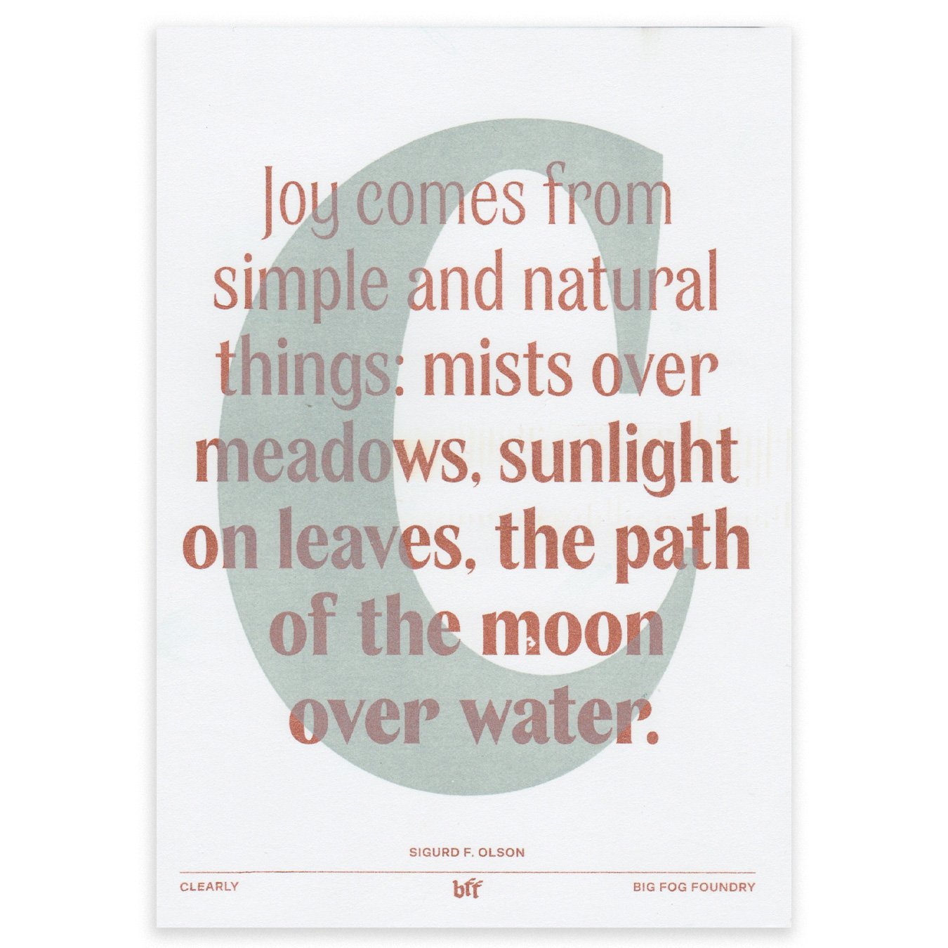Risograph printed specimen featuring a quote from Sigurd F. Olson